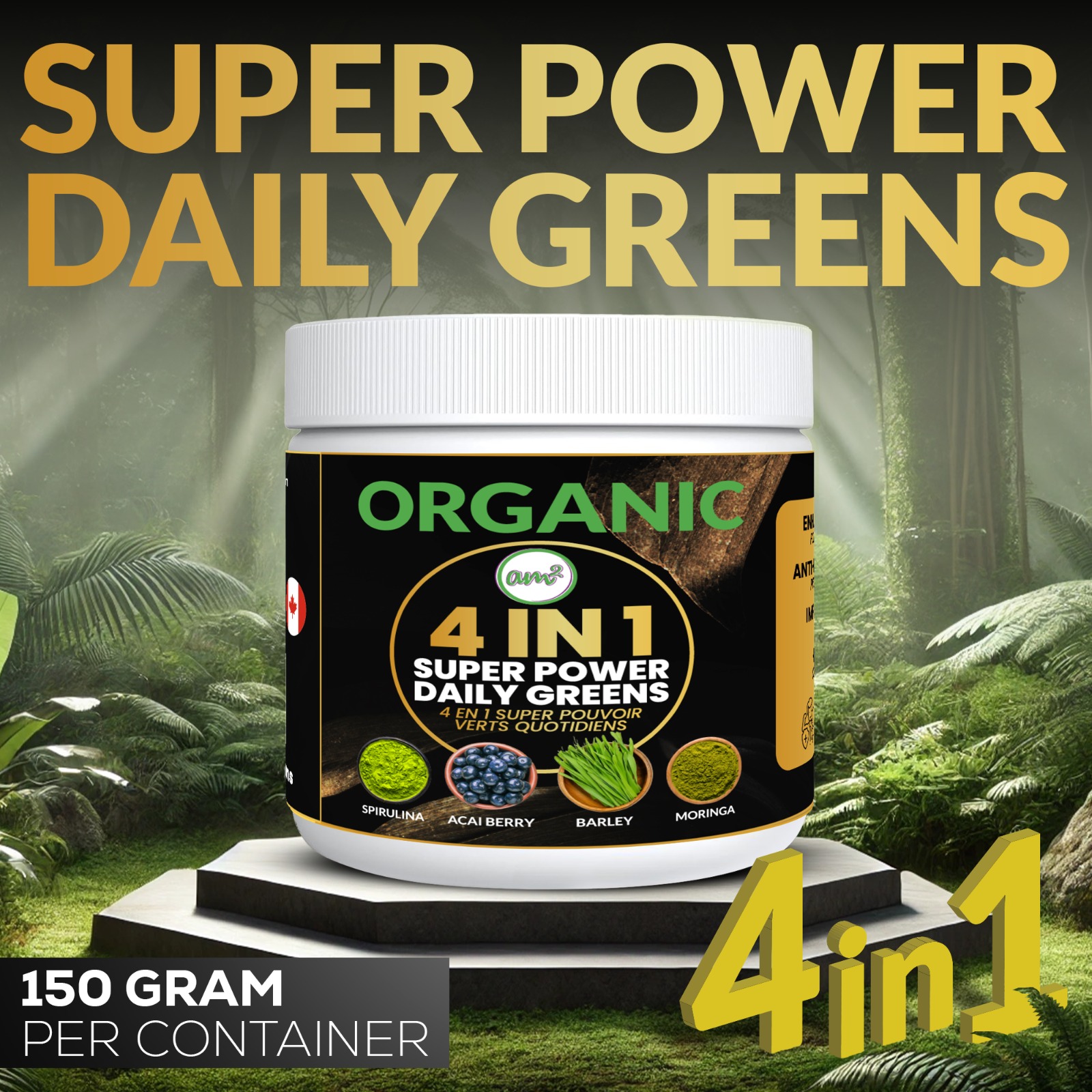 This powerful blend combines four of nature’s most nutrient-rich superfoods: Organic Barley Grass, Acai Berry, Moringa Leaf, and Spirulina. Carefully formulated to give you an all-in-one boost, this blend provides essential vitamins, minerals, antioxidants, and plant-based nutrients to support your daily health and vitality. - Benefits of the 4-in-1 Superfood Blend: